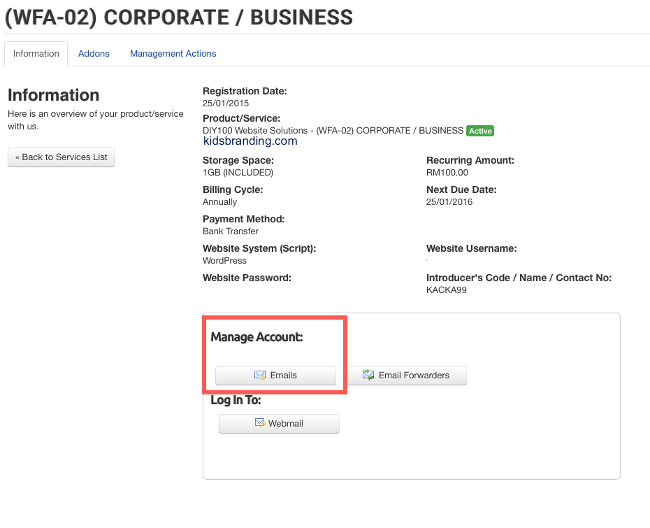 In this tutorial we will show you how to setup your custom email accounts, Eg: yourname@yourdomain.com To step up your email accounts, you first have to purchase any of our DIY100 Website Solutions.